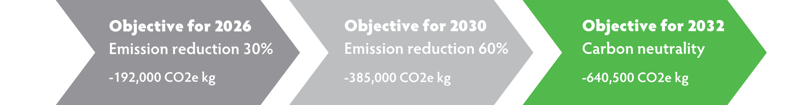 The first target for 2026 is a 30% reduction in emissions, and the target for 2030 is a 60% reduction from the 2020 level. The goal for 2032 is complete carbon neutrality.
